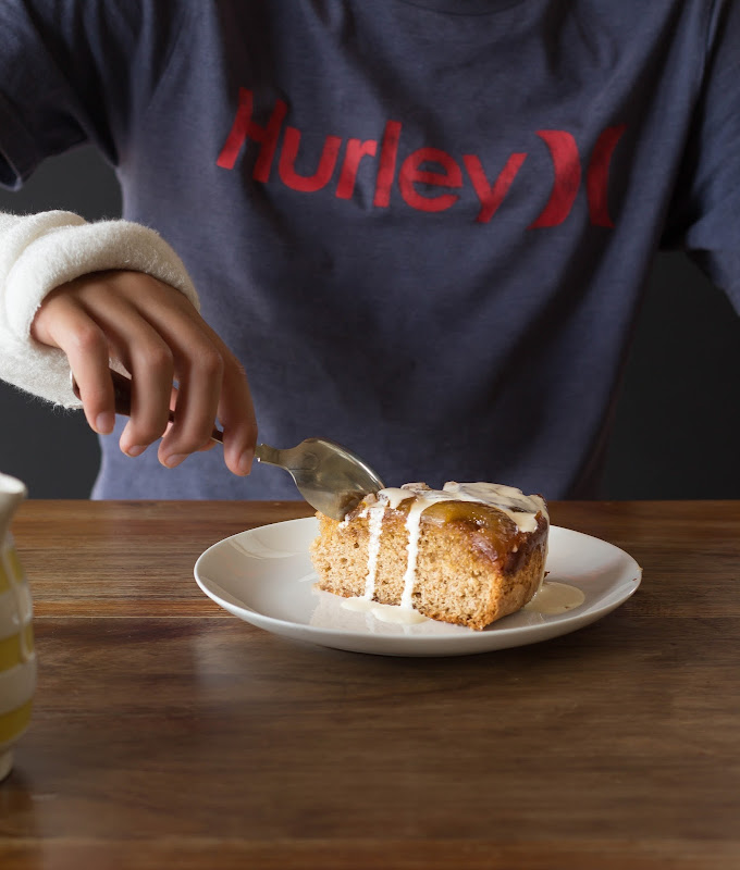 Pour the wet ingredients into the dry ingredients and mix until just combined. Don’t over mix the batter, or you’ll end up with a tough cake.